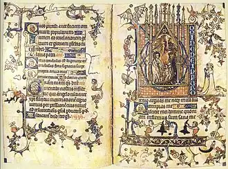 Het tweede deel[2] bevat naast de margeversiering op elke bladzijde, 3 miniaturen en 26 gehistorieerde initialen.