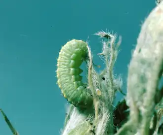 De larven zijn geel, olijfbruin of lichtgroen van kleur met zwarte pinacula. Ze hebben meestal een lichte ruglijn. Het hoofdkapsel is donkerbruin tot zwart van kleur. De poten zijn slechts rudimentair.