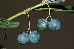 De giftige, zeer zoet smakende vrucht is een zwartblauwe, berijpte bes. De vrucht is rijp vanaf half augustus tot half september.