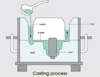 Om een gietstuk te vervaardigen is een driedimensionale afdruk (in de vorm van een holte) van het uiteindelijke product in een matrijs nodig. Daarvoor wordt een materiaal gebruikt dat veel gemakkelijker is te bewerken dan het metaal. Het wordt bijvoorbeeld gemaakt van hout.