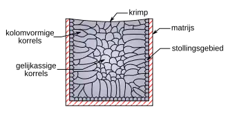 Gegoten stukken hebben een bepaalde interne gietstructuur. Deze is gevormd tijdens het stollingsproces, de kristallisatie, wanneer er zich eerst vaste percipitaten in de smelt vormen (vooral langs de matrijs) en deze vervolgens uitgroeien tot korrels. De korrels blijven naar binnen groeien tot een vast gietstuk is gevormd en alle smelt is gestold.[1] De afmetingen van de korrels zijn bij gieten in de meeste gevallen groter dan bij omvormen.