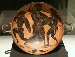 Toen riep Zeus de sterveling tot zich, die door het noodlot tot redder van de goden bestemd was; het was zijn zoon Herakles. Zodra deze, door Athena geleid, op de kampplaats verscheen, begon het tweede gedeelte van de grote strijd, de ontzettende Gigantomachie of Gigantenkrijg. Eerst doorschoot hij de gevaarlijkste der Giganten, Alkyoneus, met zijn dodelijke pijlen; zodra echter de reus zijn moeder, de aarde, aanraakte, stond hij met nieuw leven en nieuwe kracht weer op. Daarom bleef er voor Herakles niets anders over dan de raad van Athena te volgen en zijn wederopgestane tegenstander uit zijn geboorteland Pallene weg te slepen; een tweede pijlschot op een vreemde grond doodde nu het monster ogenblikkelijk. Terstond deed zich een nieuwe vijand tegen de overwinnaar op. Porphyrion viel tegelijk op hem en op Hera aan; doch de schoonheid van de koningin der goden deed de woede van de reus onmiddellijk bedaren, zodat hij, zijn hoofddoel vergetende, haar geweld wilde aandoen. Deze onbezonnenheid boette hij weldra met zijn leven. Zeus trof hem met zijn bliksem en Herakles schoot hem met zijn pijlen neer.