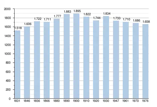 - Bronnen:NIS, Opm:1831 tot en met 1970=volkstellingen