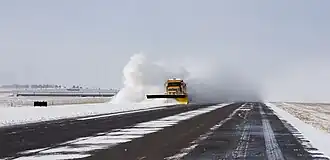 Sneeuwruimen gebeurt met aangepaste sneeuwploegen. Om wintergladheid te bestrijden op een startbaan en taxibaan, op een platform en een avioduct kunnen verschillende soorten vloeibare en vaste chemische producten worden gebruikt, waaronder propyleenglycol, ethyleenglycol, calcium-magnesium-acetaat en andere organische verbindingen. Verbindingen op basis van chloride (bijv. strooizout) worden niet gebruikt op luchthavens vanwege hun corrosieve effect op vliegtuigen en andere apparatuur. Ook mengsels met ureum werden gebruikt vanwege hun lage kosten. Ureum is echter vervuilend in waterwegen en natuurgebieden, omdat het na gebruik afbreekt tot ammoniak. In 2012 verbood het Amerikaanse Environmental Protection Agency (EPA) het gebruik van op ureum gebaseerde producten op de meeste commerciële luchthavens.[3]