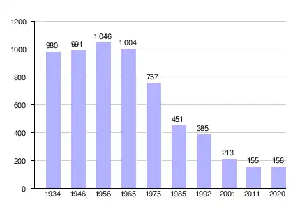 | Bevolkingsontwikkeling tussen 1934 en 2020 |