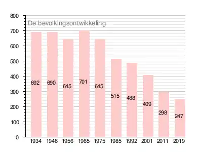 Het dorp telde in december 2019 247 inwoners, een daling vergeleken met het maximum van 701 personen in 1965.