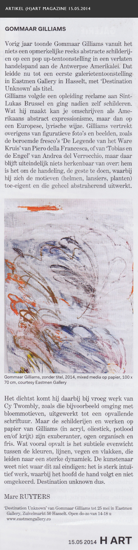 - ↑ a b Ruyters, Marc (15 mei 2014). Gommaar Gilliams. (H)Art 2014