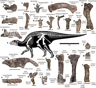 In het algemeen is er een mengsel van basale en afgeleide kenmerken. Er zijn overeenkomsten met basale Hadrosauroidea. De kaken hebben het lage aantal van ongeveer vijfentwintig tandposities. De symfyse van de onderkaken staat schuin op de kaaktakken. De deltopectorale kam op het opperarmbeen is vrij kort. Het darmbeen heeft een vrijwel rechte bovenrand. De processus supraacetabularis is lang. De crista cnemialis van het scheenbeen is kort.
