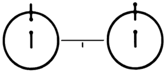 ![]() De bovenste afbeelding geeft de twee configuraties van het waterstofmolecuul (H2) weer. De overgang van ene energieniveau naar het andere (de hyperfijnsplitsing) geeft een energieverschil dat correspondeert met een frequentie van 1420,406 MHz, wat overeenkomt met een golflengte van 21,1 cm. Deze lengte is de eenheid die gebruikt wordt voor de andere afbeeldingen. |