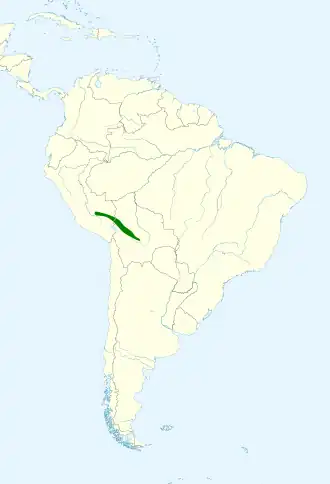 De soort komt voor in het oostelijk deel van de Andes op hoogten tussen 1600 en 3200 meter boven zeeniveau.[3]