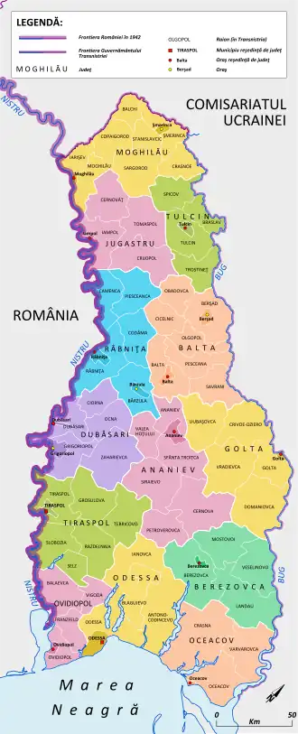 Adolf Hitler overtuigde de Roemeense premier Ion Antonescu ervan om Transnistrië te veroveren als compensatie voor het aan Hongarije verloren deel van Transsylvanië door de Tweede Scheidsrechterlijke Uitspraak van Wenen. Hierdoor kwam het gebied, in tegenstelling tot het overige gebied van de Moldavische ASSR, voor het eerst onder Roemeens bestuur. Het gebied werd niet geheel in Roemenië geïncorporeerd maar bleef, mede door de ontwikkelingen aan het Oostfront, vooral onder militair bewind. Gheorghe Alexianu werd aangesteld als gouverneur.