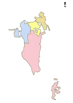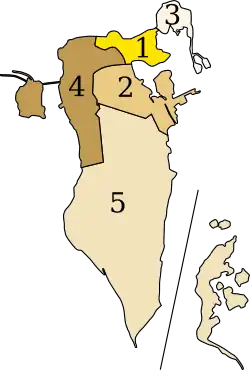 Bahrein is bestuurlijk onderverdeeld in vijf gouvernementen (muhafazat):