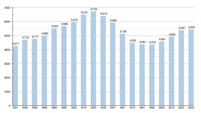 Alle historische gegevens hebben betrekking op de huidige gemeente, inclusief deelgemeenten, zoals ontstaan na de fusie van 1 januari 1977.