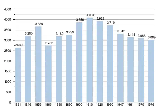 - Bronnen:NIS, Opm:1831 tot en met 1970=volkstellingen, 1976= inwoneraantal op 31 december