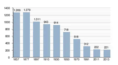 - Bron: INE, 1857-2011: volkstellingen