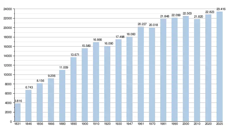 Alle historische gegevens hebben betrekking op de huidige gemeente, inclusief deelgemeenten, zoals ontstaan na de fusie van 1 januari 1977.