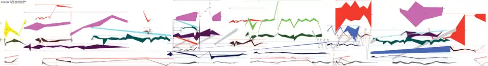 - waarin de muziek met symbolen en illustraties wordt weergegeven (deze notatie volgt de traditie van een tijd-toonhoogtegrafiek, en wordt net als traditionele notatie van links naar rechts gelezen):
