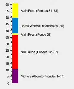 - Eerste rondes als raceleider voor Derek Warwick.