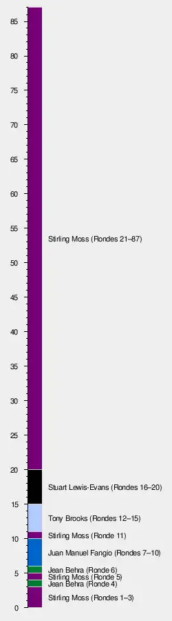 - Eerste snelste ronde en rondes als raceleider voor Tony Brooks.