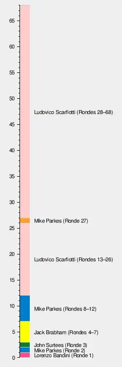 - Eerste snelste ronde, rondes als raceleider, podiumplaats en Grand Prix-winst voor Ludovico Scarfiotti.
