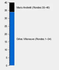 De race werd drie uur later herstart en ingekort tot 40 ronden vanwege het feit dat wanneer de race over de volle afstand verreden zou worden de bosrijke delen van de baan te donker zouden zijn om nog veilig te kunnen racen. Villeneuve kon voorbij Andretti gaan bij de herstart, maar beiden bleken een valse start gemaakt te hebben waardoor ze achteraf een minuut straftijd kregen. Andretti pakte de leiding met nog vijf ronden te gaan. Jean-Pierre Jabouille moest opgeven, waardoor Lauda derde werd voor John Watson, Carlos Reutemann, Jacques Laffite en Patrick Tambay. Deze finishten allemaal binnen een minuut van de winnaar, waardoor Andretti zesde werd en Villeneuve zevende. Andretti werd wereldkampioen maar doordat Peterson in het ziekenhuis lag, bleef de viering hiervan beperkt.