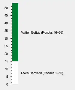 | 3 | 44 | Mercedes | 53 | +22.729 | 1 | 15 | |