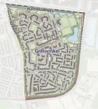 Graswinkel is grotendeels ontworpen in een zogenoemde bloemkoolwijk structuur. De wijk is daardoor alleen toegankelijk voor bestemmingsverkeer, doorgaand verkeer is niet mogelijk.