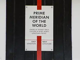De meridiaan van Greenwich, een belangrijke nulmeridiaan, loopt door Greenwich, een stadsdeel van Londen in het Verenigd Koninkrijk. Het is de lijn waar de lengtegraad gelijk is aan 0. Noen, ofwel het moment dat in Greenwich de middelbare zon (zie hierna) op zijn hoogste punt aan de hemel staat (in het zuiden), is het in deze tijdzone precies twaalf uur 's middags. De aanduiding hiervoor is 12.00 GMT.
