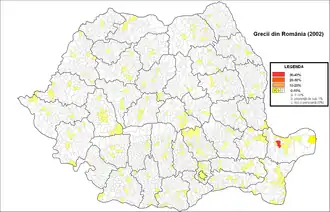 Volgens de Roemeense volkstelling van 2002 bestond de Griekse gemeenschap uit 6.472 personen, van wie de meesten in Boekarest en omgeving woonden, gevolgd door de districten in Dobroedzja (Tulcea en Constanța) en Brăila en Galaţi. Bij de volkstelling van 2001 werden er 6.472 Grieken geregistreerd en in 1992 waren er nog 19.594 etnische Grieken. Er is sinds de tweede helft van de twintigste eeuw een intensieve trend van culturele assimilatie gaande, waardoor het aantal Grieken drastisch is gedaald (zie: tabel).