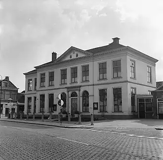 Het gebouw werd in 1967 opgenomen in het bestand aan rijksmonumenten. Het monumentenregister gaf als reden, dat het breed rechthoekig gebouw, dat gelegen is op een kruising van wegen, is gebouwd in de 19e eeuw onder een laag tentdak. Opvallend aan het gebouw is de forse daklijst. De drie bouwlagen (begane grond, eerste etage, zolder) hebben een middenrisaliet met daarboven een timpaan met afbeelding van het Wapen van Friesland (rechts) en het Wapen van Weststellingwerf (links). De meeste ruiten zijn rechthoekig en verdeeld in zes en acht segmenten, gewoon voor die tijd. De ramen naast de toegangsdeur hebben echter een boogconstructie aan de bovenzijde, hetgeen zich voortzet in het bovenlicht annex snijraam boven die toegangsdeur. De deur bevindt zich tussen pilasters met een bovenlijst. Het gebouw is geheel bepleisterd. Het gebouw kent een neoclassicistische bouwstijl en is van architect/timmerman Elbert de Graaf. Het pand werd daarbij in eerste instantie vergezeld door een uitgestrekte tuin. Wolvega werd ter plaatse volgebouwd. In de 20e eeuw diende het gebouw meestentijds tot gemeentehuis. In september 1980 verlieten de ambtenaren het pand om zich te vestigen in het gebouw aan de Griffioenpark. Het behoud van het pand drukte vervolgens dermate zwaar op de begroting, dat werd besloten het voor een vriendenprijs te verkopen onder de voorwaarde dat het behouden werd. Er kwam vervolgens een horecabedrijf in het gebouw.[2] In de nacht van 12 op 13 september 2017 ontstond brand op de eerste etage, waarbij het gebouw zodanig beschadigd raakte dat het gebouw als verloren werd beschouwd.