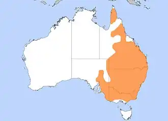 Deze vogel komt voor in het oosten van Australië en telt drie ondersoorten:[4]