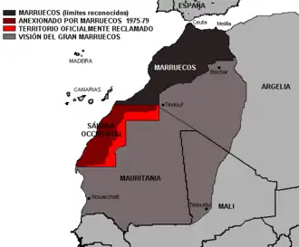 Na de onafhankelijkheid van Marokko in 1956 en de dood van koning Mohammed V in 1961 maakte de regering van koning Hassan II aanspraak op verschillende gebieden en wist de Tarfaya-strook, na de Ifni-oorlog met Spanje, en een groot deel van het gebied rond Ceuta en Melilla te verwerven. Ook nam Marokko een groot deel van de Spaanse Sahara in, nadat Spanje het grondgebied aan Marokko en Mauritanië had overgedragen (zie de akkoorden van Madrid, momenteel nog steeds betwist met het Polisario-front, dat het opeist als de Arabische Democratische Republiek Sahara).