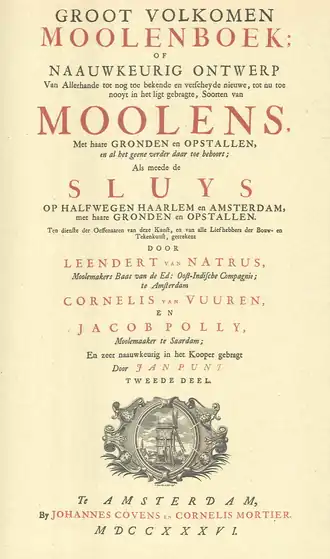 - Groot volkomen moolenboek/Deel 2/Naauwkeurig ontwerp van allerhande soorten van moolens‚ en van de sluys op halfwegen Haarlem.