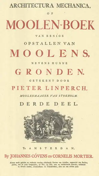In dit deel worden ook buitenlandse molens beschreven. Volgens de titelpagina is de tekenaar van dit deel (Pieter Linperch) zelf molenmaker te Stockholm.