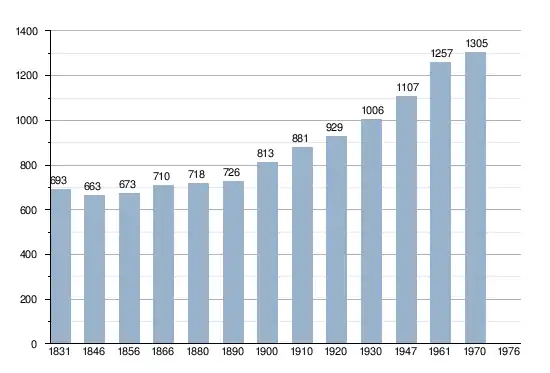 - Bronnen: NIS, Opm:1831 t/m 1970=volkstellingen