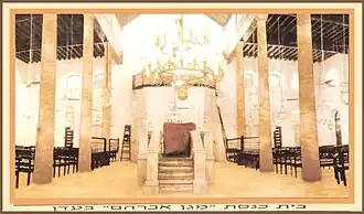 De synagoge was gebouwd in 1858 en bood plaats aan circa 2000 personen. Aan de oostkant van het gebouw was een vrouwengalerij. De marmeren vloer was zwart-wit geblokt als een schaakbord. De Torahrollen waren voorzien van gouden kronen. Aan beide zijden van de ingang waren de Tien Geboden aangebracht in zilveren lijsten.