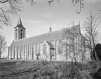 De bouw van de kerk begon na 1400. Het koor was in 1450 gereed, de toren verrees tussen 1510 en 1550. Sinds 1572 is de kerk protestants. Na dat jaar werd de doopkapel verwijderd. In 1644 waren de laatste traveeën van het schip voltooid; rond die tijd werd ook de torenspits vernieuwd.