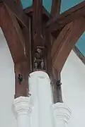 In de kruising zijn vier houten figuurtjes, zogenaamde schalkbeelden, afkomstig uit de in 1875 afgebroken kerk van Nieuwe Niedorp geplaatst.[4] Deze figuurtjes stammen uit de gotiek. Ze stellen twee vrouwen en twee mannen voor. De vrouwen hebben de namen Ipke en Geelstipke. De mannen zouden Boekmeijer en Abbegeerte heten. Zij zouden de stichters van de kerk in Nieuwe Niedorp zijn geweest.[5]
