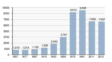 - Bron: INE, 1857-2011: volkstellingen