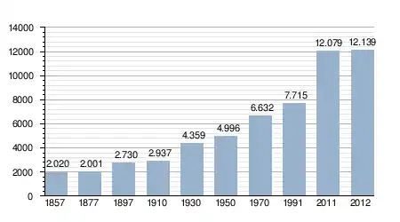 - Bron: INE; 1857-2011: volkstellingen