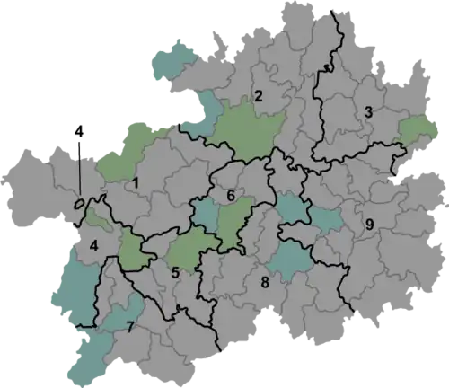 | 8 | Qiannan (Buyei & Miao) | 黔南布依族苗族自治州 | Qiánnán Bùyīzú Miáozú Zìzhìzhōu | ||||