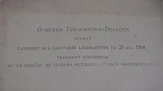 - Gustave Terwangne, Comment l'ouvrier deviendra propriétraire de sa maison. Etude pratique de la loi du 9 août 1889 sur les sociétés d'habitations ouvrières, Hoei: A. Colin-Houbeau, 1896 (15 pp.). Heruitgave 1900.