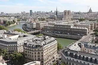 Het bevindt zich aan de noordzijde van het Place du Parvis Notre-Dame. Het werd tussen 1866 en 1878 gebouwd op de grondvesten van een oud weeshuis. Het Hôtel Dieu, dat in de 12de eeuw werd gebouwd, lag tussen de oevers van het eiland Île de la Cité aan de zuidzijde van het huidige Place du Parvis Notre-Dame - place Jean-Paul-II. In de 19de eeuw werd het gesloopt voor de stadsvernieuwing van baron Haussmann.