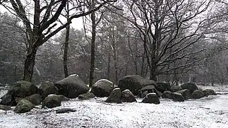 - De meest westelijke kamer (Sprockhoff-Nr. 856, het Großsteingrab im Ipeken I - Tannenwald) ligt direct ten zuiden van de straat in een onvolledige ovalen krans. Er zijn nog 24 stenen van de krans aanweezig. Van de kamer zijn alleen de dekstenen zichtbaar. Er waren oorspronkelijk tien, waarvan tegenwoordig nog zeven aanwezig zijn. Ook zijn er nog brokstukken van een andere deksteen vlak bij het bouwwerk te vinden.
