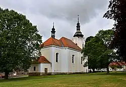 Midden in het dorp staat Allerheiligenkerk. Van oorsprong was het een vroeggotisch gebouw met prismatische toren aan de westkant, maar tussen 1758 en 1773 werd het gebouw vervangen door een barokke kerk. Het ontwerp was waarschijnlijk van architect Francis Ignatius Prée, maar er is ook een ontwerp van Anselmo Lurago uit 1763 bewaard gebleven. Op het hoofdaltaar staat het schilderij van Allerheiligen, een olieverfschilderij van pater Dallinger uit 1768. De zijaltaren zijn in rococostijl en beelden de Heilige Anna en Heilige Barbara uit. Deze beelden zijn afkomstig uit de kerk in Křivoklát.[3]