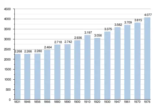 - Bronnen:NIS, Opm:1831 tot en met 1970=volkstellingen; 1976 = inwoneraantal op 31 december