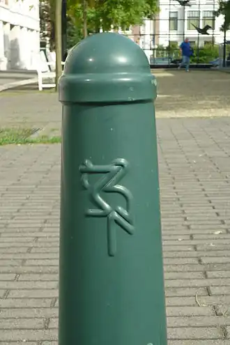 Een hagenaartje is een rond afzetpaaltje dat ongeveer 70 centimeter boven de grond uitsteekt. Op het paaltje staat de Haagse ooievaar.
