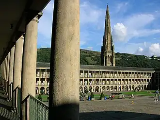 - Piece Hall, de voormalige lakenhal, werd geopend op 1 januari 1779. Na de mechanisatie van de lakenindustrie werd het een voedingsmarkt. Nu zijn er talrijke winkeltjes, voornamelijk met ambachtelijke producten.