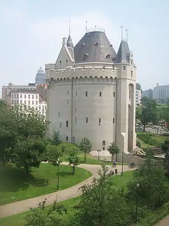 Ook de dakstructuur onderging een grondige wijziging. Het dak van de toren werd hoog en spits, afgewerkt met schitterend metaalwerk. Aan de randen werden loopbruggen met kantelen toegevoegd alsook enkele torentjes. De toren aan de kant van Sint-Gillis (de buitenzijde van de omwalling) leunt nog het meest aan bij het oorspronkelijke uitzicht van de stadspoort. De toren kreeg enkel een iets spitser dak eveneens voorzien van fraai metaalwerk. Door een verhoging van het straatniveau is de voormalige toegangspoort echter niet meer zichtbaar. De hele renovatie was afgerond in 1871.