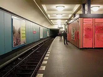 In 1975-1976 werd het eilandperron van de U6 verlengd van 80 tot 110 meter, om langere treinen te kunnen ontvangen. Tegelijkertijd kregen de oorspronkelijk wit betegelde wanden een bekleding van blauwe asbestcementplaten.
